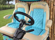 We have a wide array of golf cart accessories available in our showroom including wheel covers, dashboards, rear flip seats, etc.